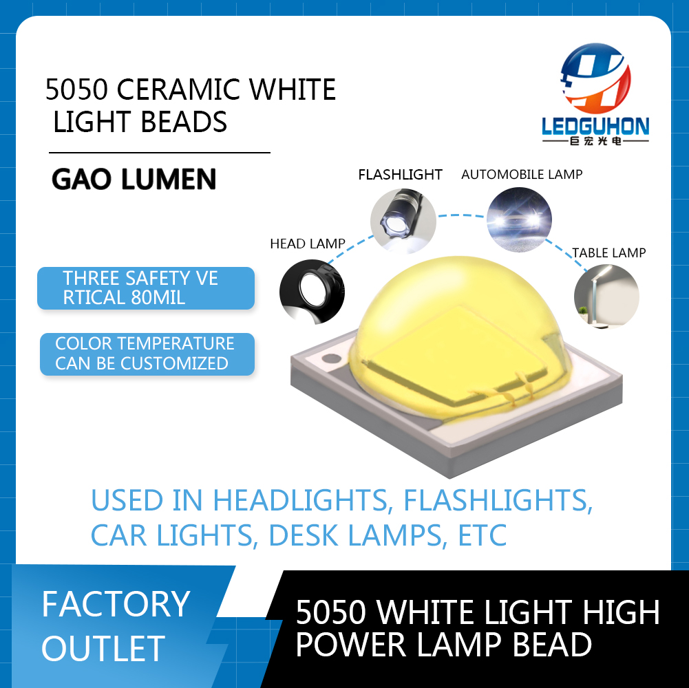 Ceramic white high-power LED lamp beads are a new type of high-brightness lighting equipment, which uses ceramic substrate as the substrate to generate white light by exciting the LED chip. Compared w...